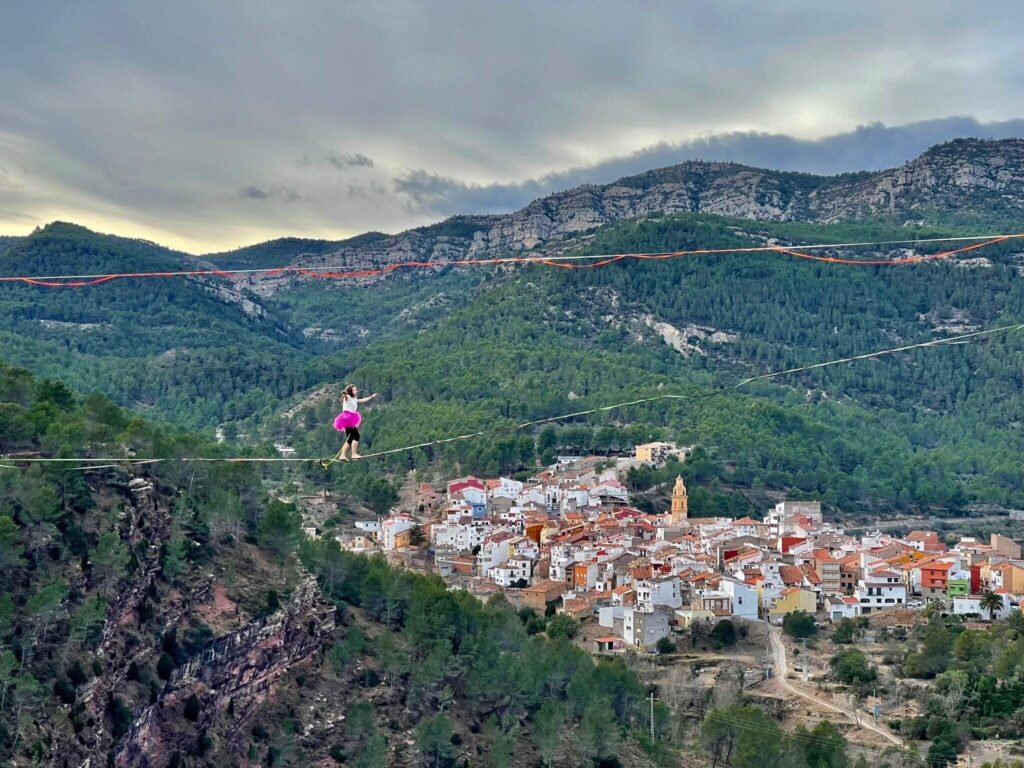 U: Teraz najczęściej jestem na taśmie freestyle’owej… Na czym ona polega? Dobre pytanie (śmiech).Highline freestyle, na czym polega? No nie wiem, na bansowaniu na mega napiętej taśmie i robieniu akrobacji czy też trików. Tu uczysz się slackline praktycznie od nowa. Dodatkowo taśma freestylowa jest dla mnie łatwo dostępna… Bardzo lubię też chodzić po długich highlinowych taśmach, tylko tu jest problem z rozwieszeniem, takiej np. 300-metrowej taśmy i znalezieniem odpowiedniego spota. Gdyby to było proste, to na pewno więcej czasu spędzałabym na długich taśmach. Na ten moment jestem szczęśliwa, że mamy nasz perma spot, gdzie wisi moja 65-metrowa feestylowa taśma i mogę wpleść treningi w mój zwykły tydzień pracy.
